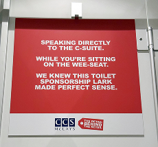 As part of a repositioning project, Gasp came up with the genius idea of having CCS McLays sponsor the toilets at the retail industry’s biggest event of the year. So I wrote dozens of funny and cheeky fourth-wall breaking copy lines on the backs of cubicle doors, on mirrors, on the floor and even on the bins. I never dreamt I’d be able to write the words “widdle” or “piddle” in a professional setting.